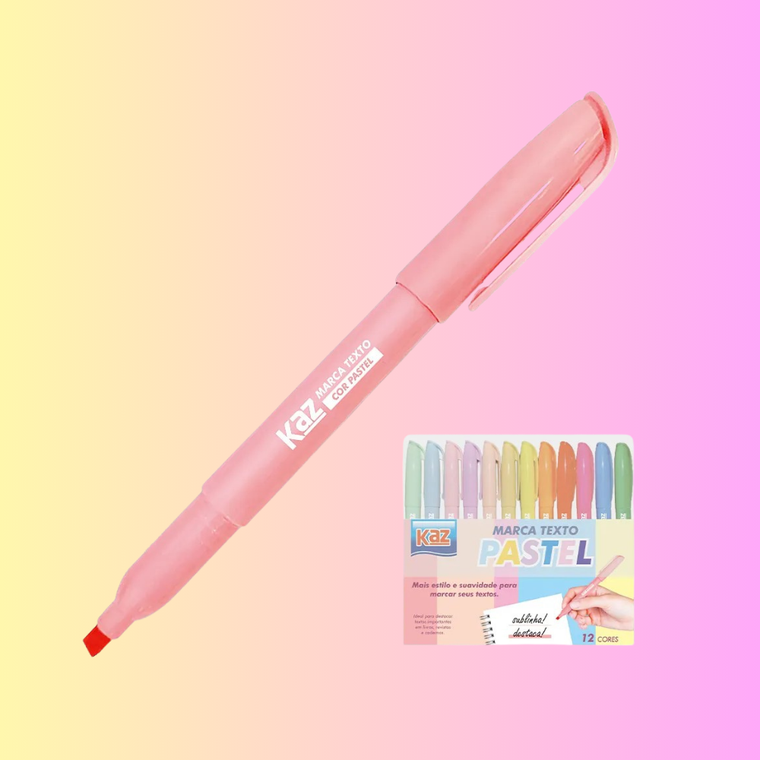 pincel marca texto 12 cores pastel Kaz